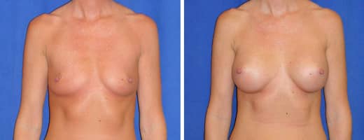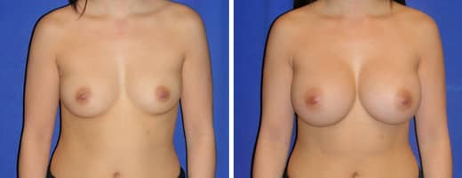 22 years old, 5’3″, 105lbs, 275cc Saline Implants, Preop 32B to Postop 32C