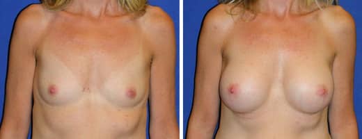 53 years old, 5’3”, 115lbs, 300cc Silicone/Gel Implants, Preop 34B to Postop 34C