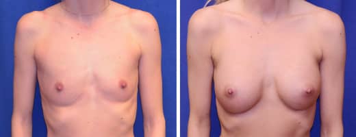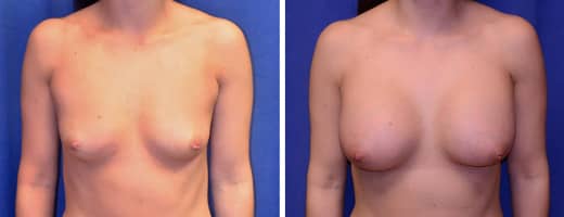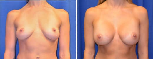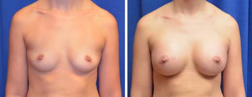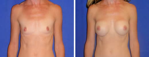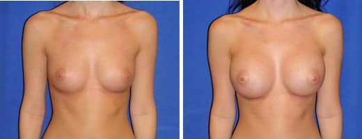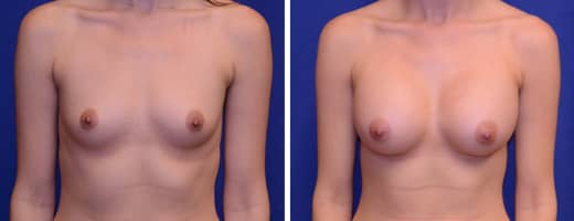 24 years old, 5’6”, 112lbs, 300cc Saline Implants, Preop 32A to Postop 34C